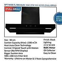 Introducing the Elica SPT Max FL 900 BLDC Auto Clean Chimney (Full Grill, Nero) A powerful and elegant 90 cm chimney designed for heavy Indian cooking. With a high‑efficiency BLDC motor, 1500 m³/h suction, and a full‑grill suction area, this chimney ensures maximum smoke and oil capture while maintaining low noise levels.