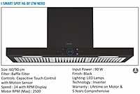 The i‑SMART SPOT H6 BF LTW 60 Nero is a compact yet powerful kitchen chimney designed for modern Indian homes. With its 60 cm width, it fits perfectly above 2‑burner and 3‑burner cooktops while delivering the same high‑performance features found in the larger 90 cm model.